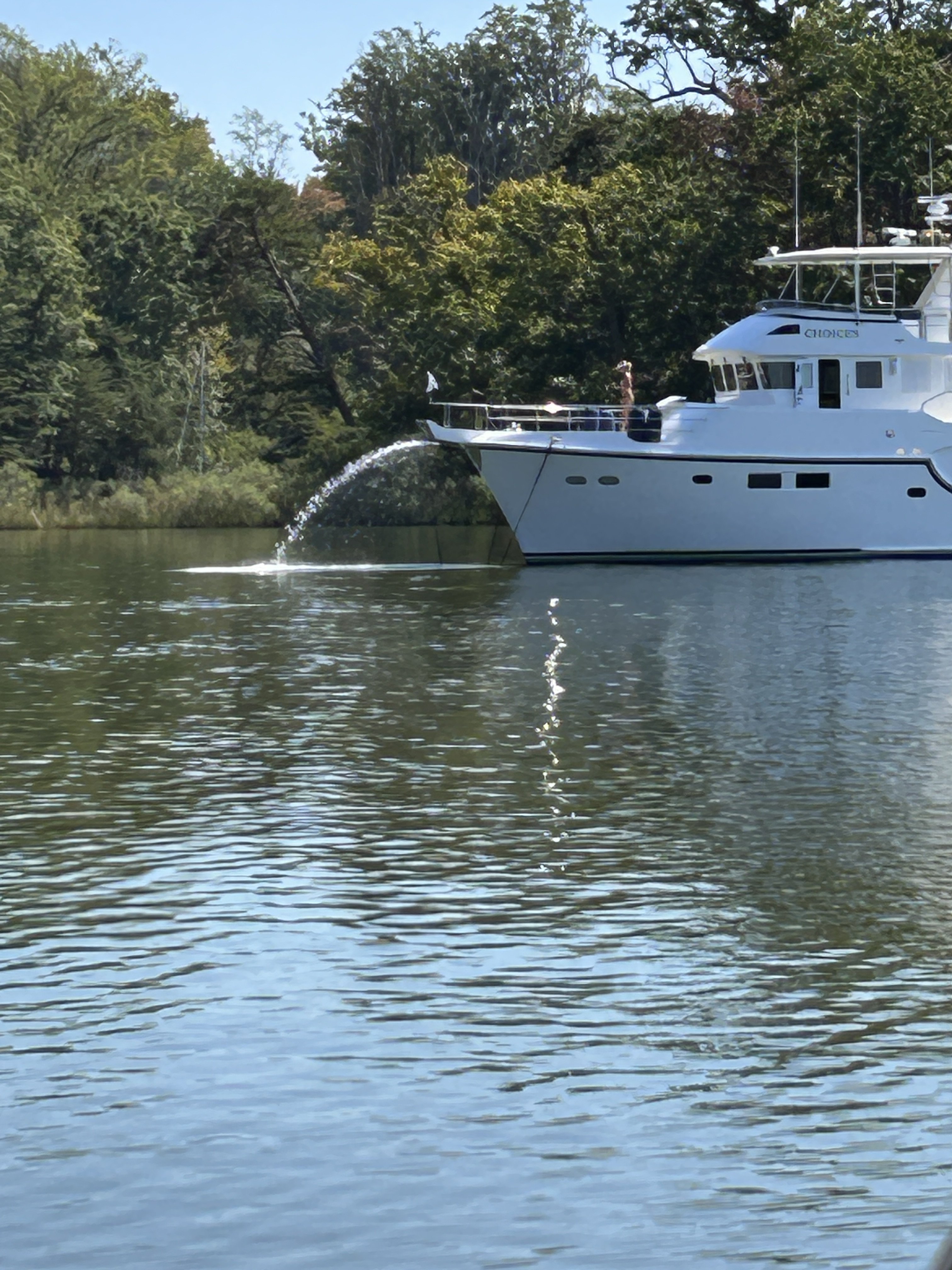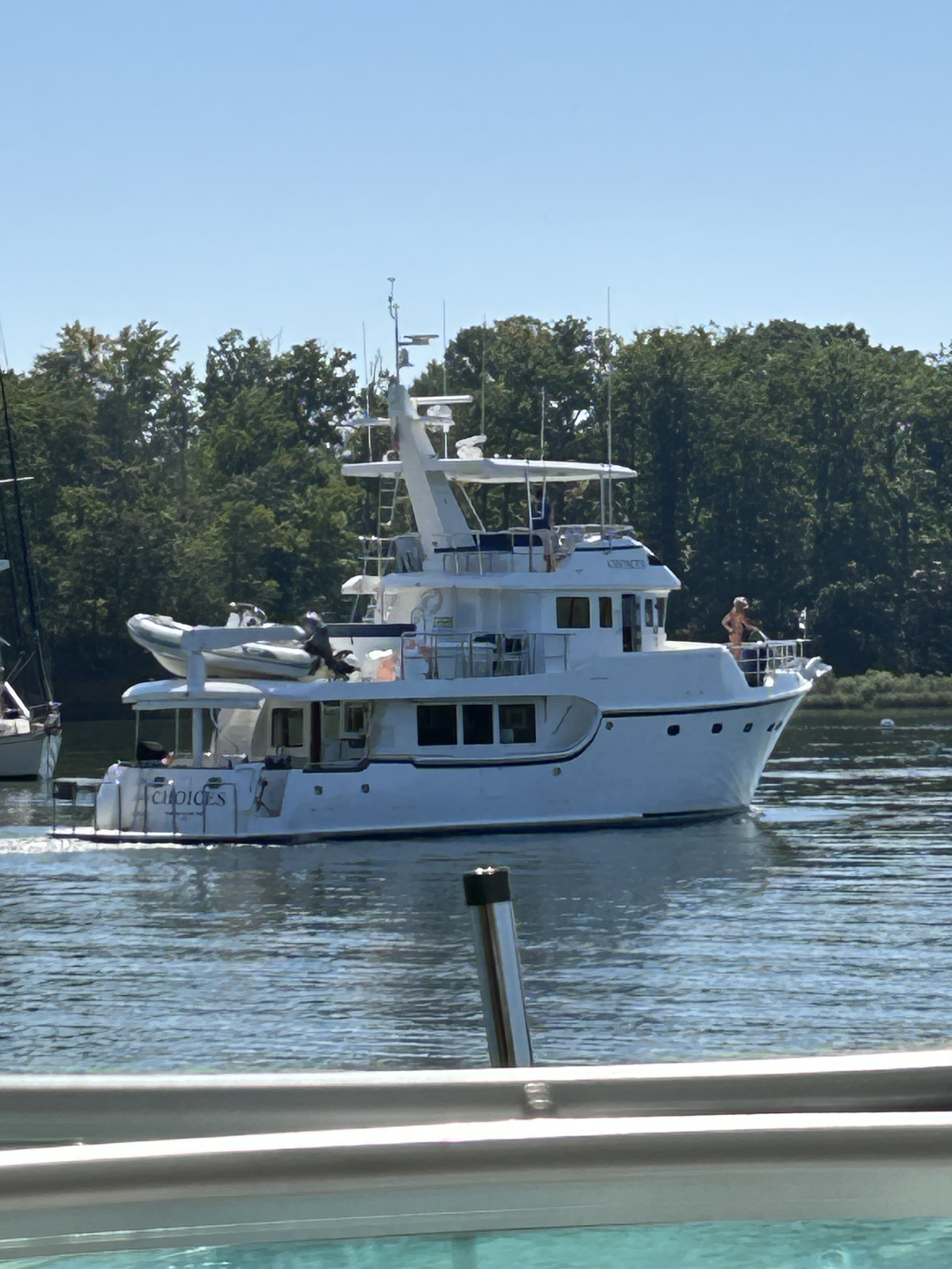 So, I just dropped anchor next to this one….Boat name is Choices and is from Catawba island, Ohio. Look it up, amazing!!! Even has a self washing anchor! Never seen that!!
