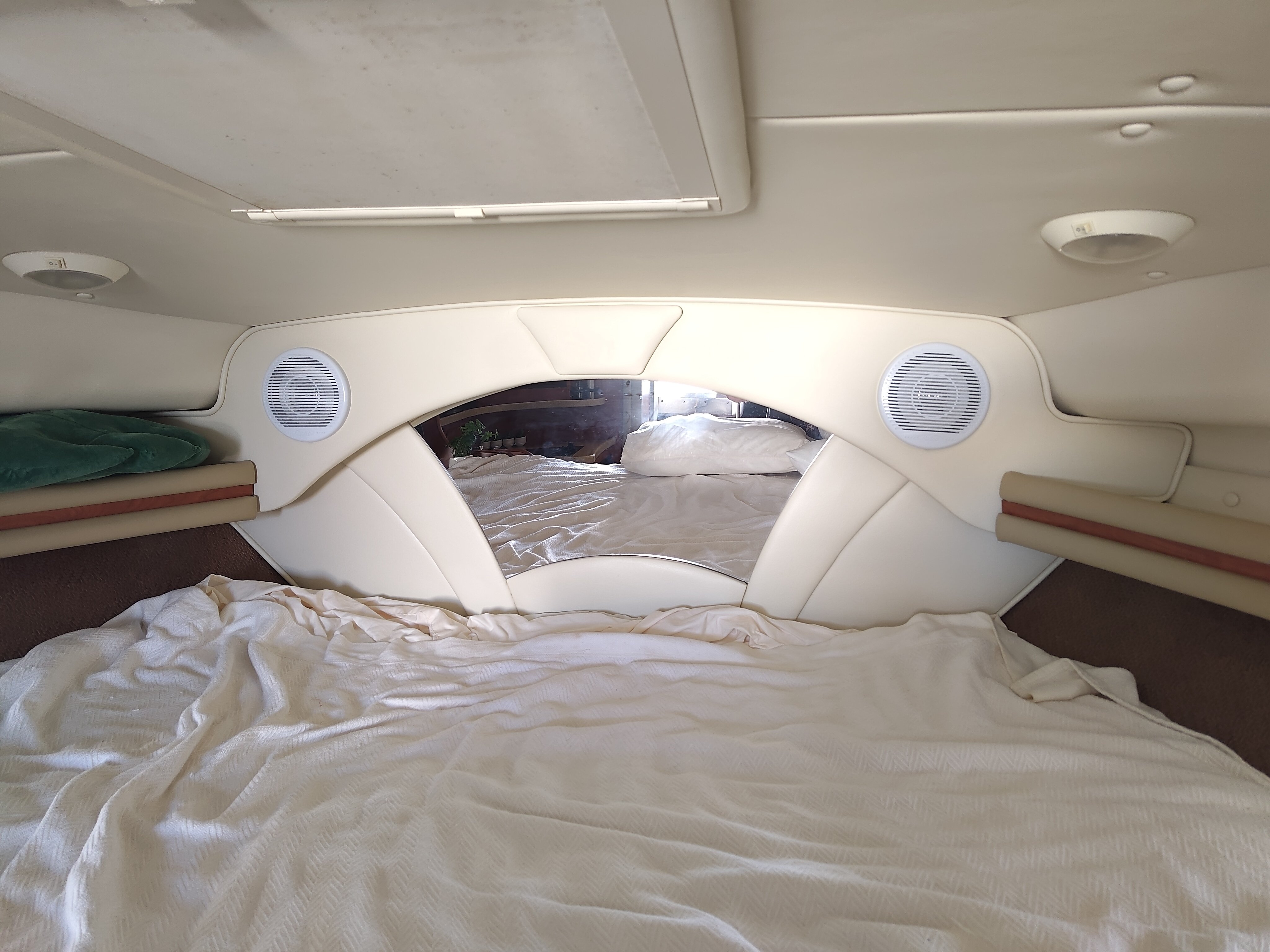 I have a 2006 342, and can't figure out how to access my anchor locker. I saw other threads mentioning that the mirror behind the front berth is attached with velcro and can easily be removed, but I don't think thats the case here. Am I missing something?