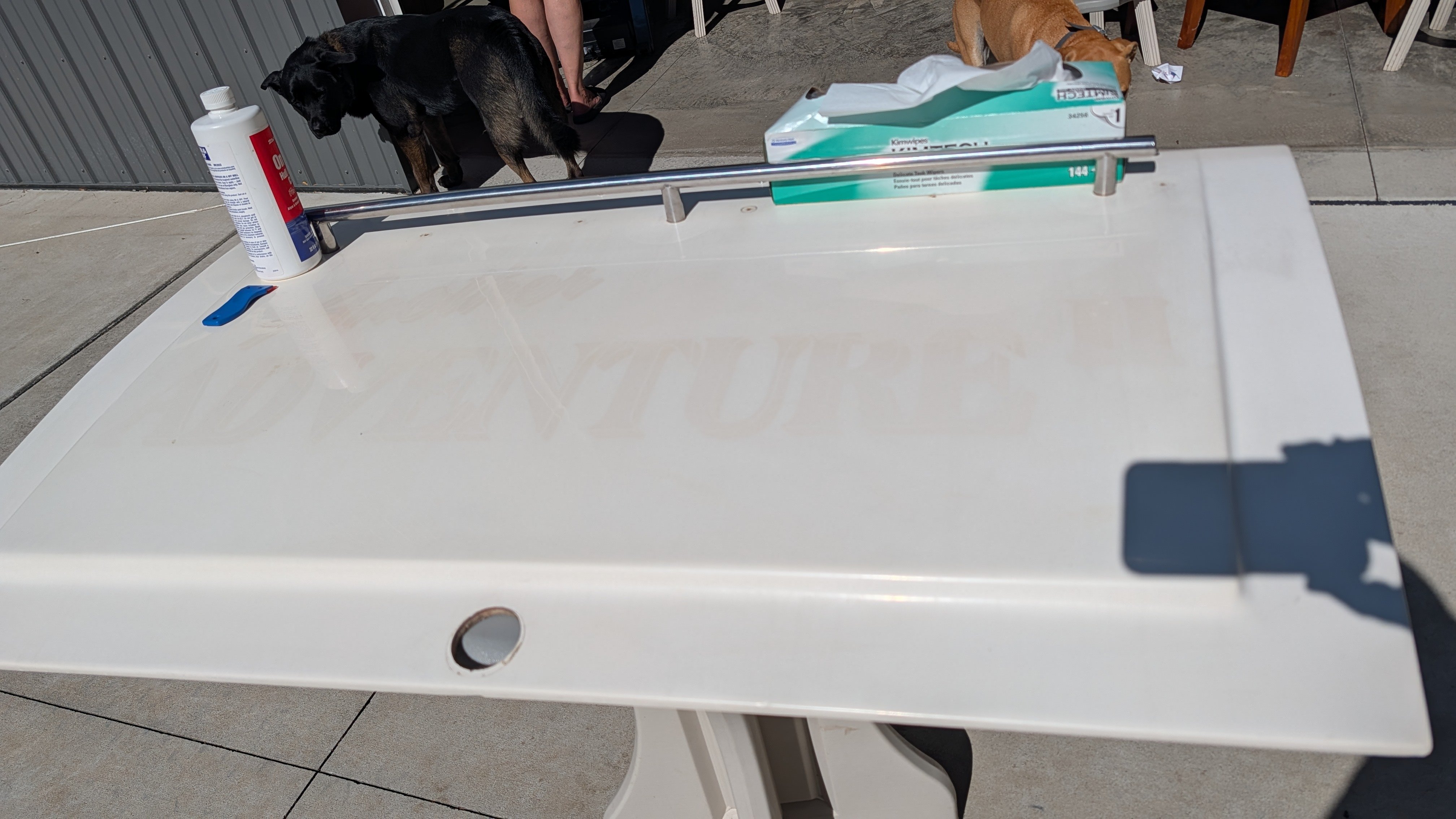 And if you look at the boat with polarized sunglasses it becomes even more visible. Which after five years is about the only way I can see the shadow on my boat now. So it does fade over time. (But it still bugs me!)