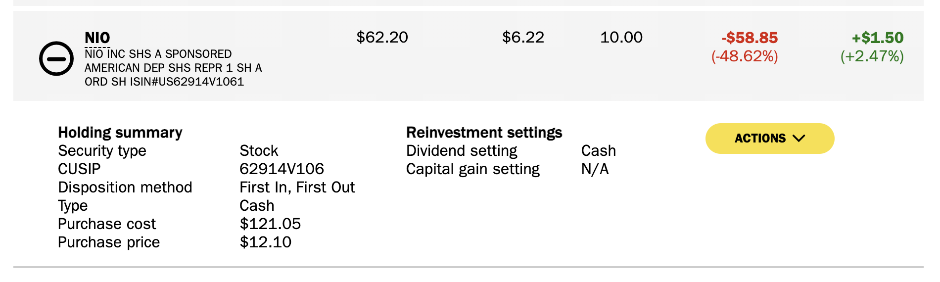 NIO is going BRRRRRR!!!  I'm glad you pointed it out to me.  I was sitting at about a 19% gain earlier this morning.