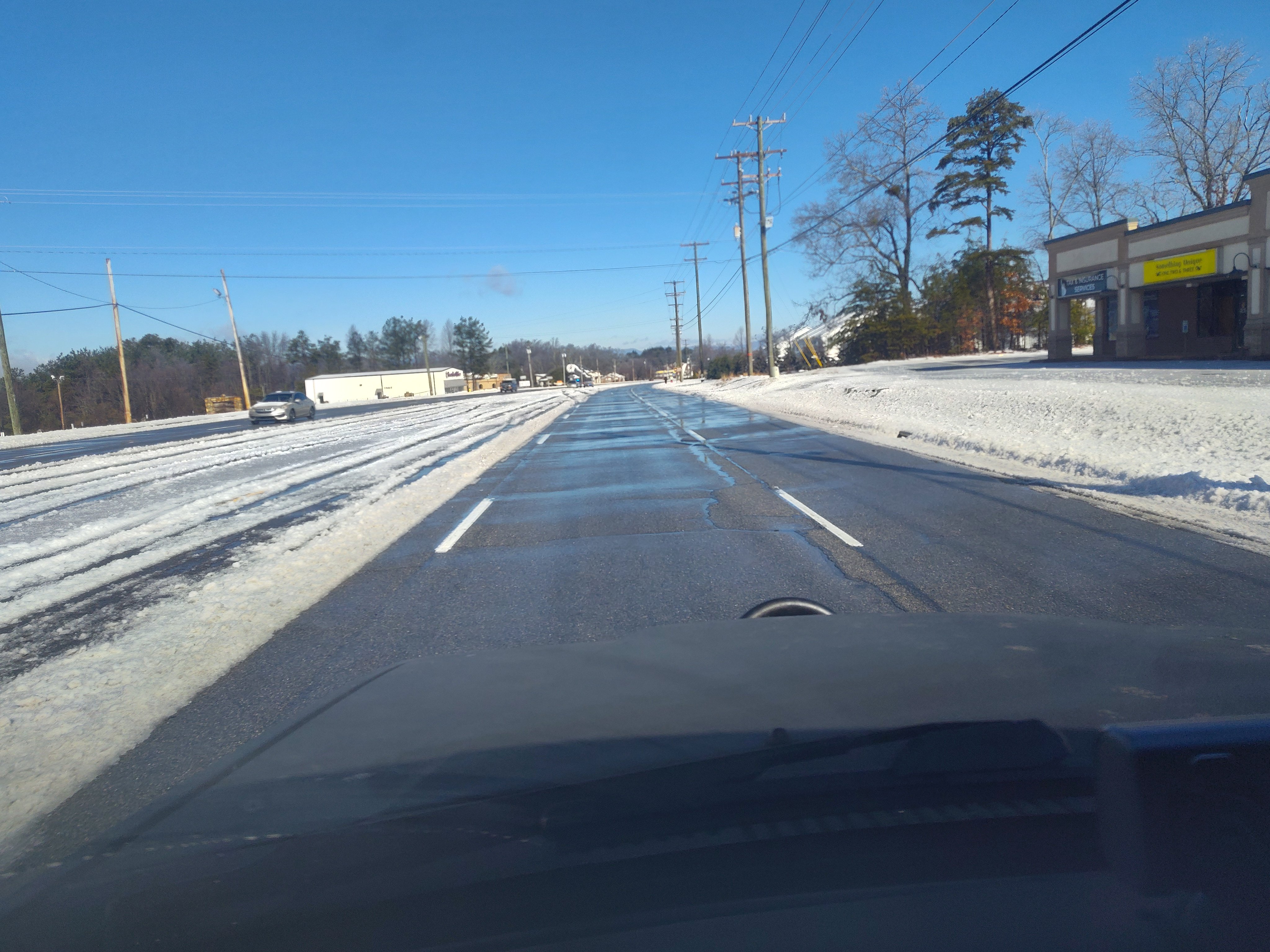 I waited until about 10am to leave for the shop. Secondary roads were sketchy. Not bad enough to keep 4wd engaged but bad enough where I had to fish tail up a few hills. Once I hit main roads they were plowed and salted well.