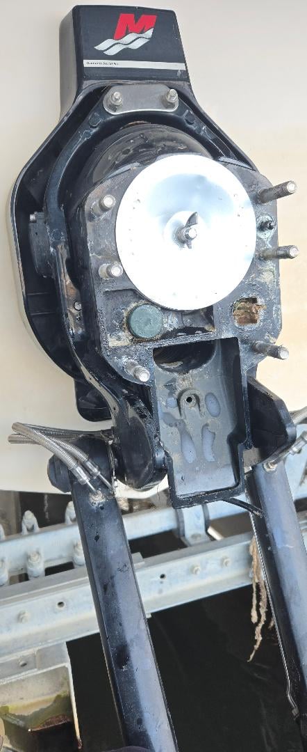 Can't believe they stole if off the boat on the lift. Those drives are not light. Can you see the bottom below the water? Sure they didn't drop drive once they got it off?