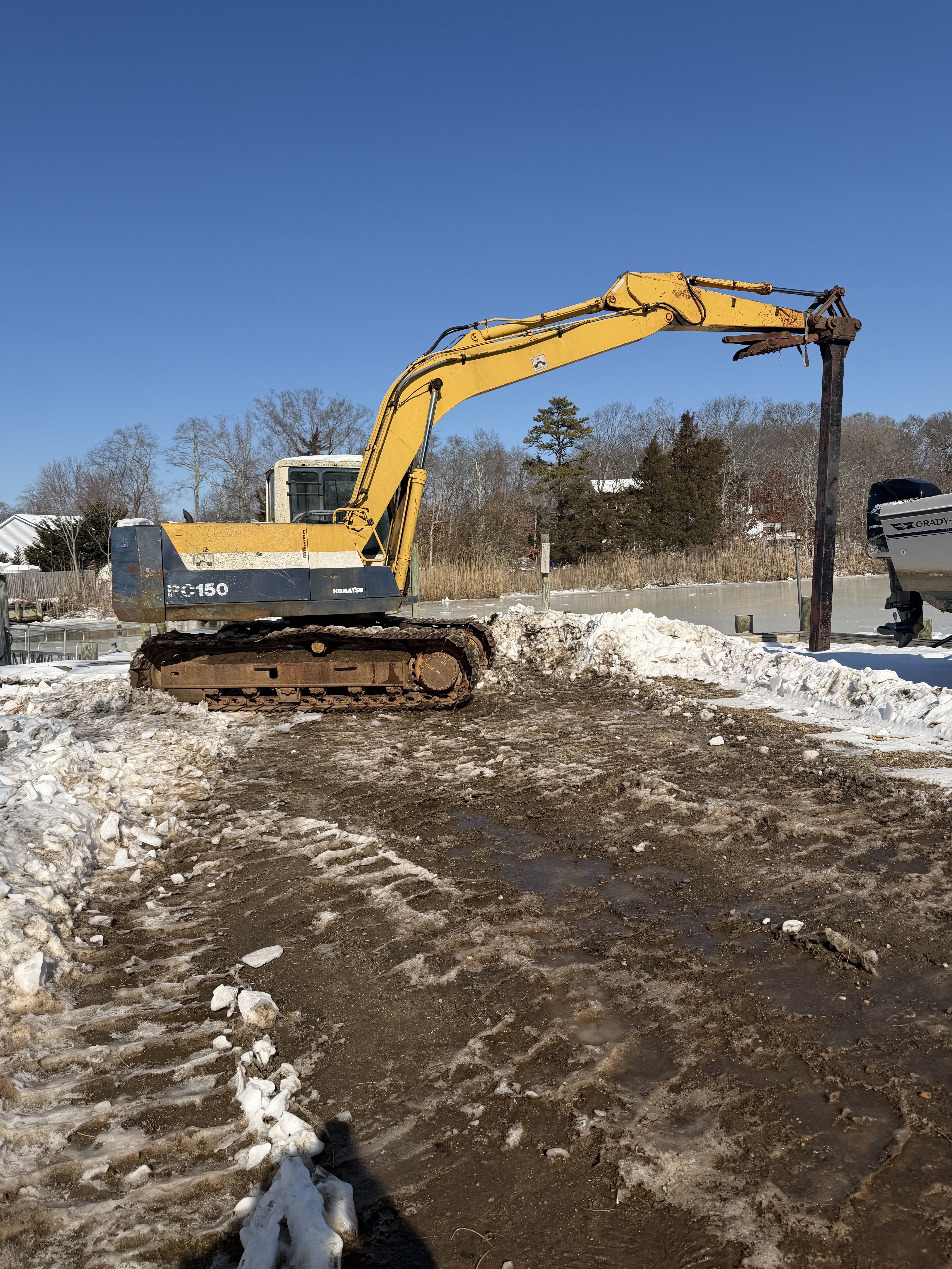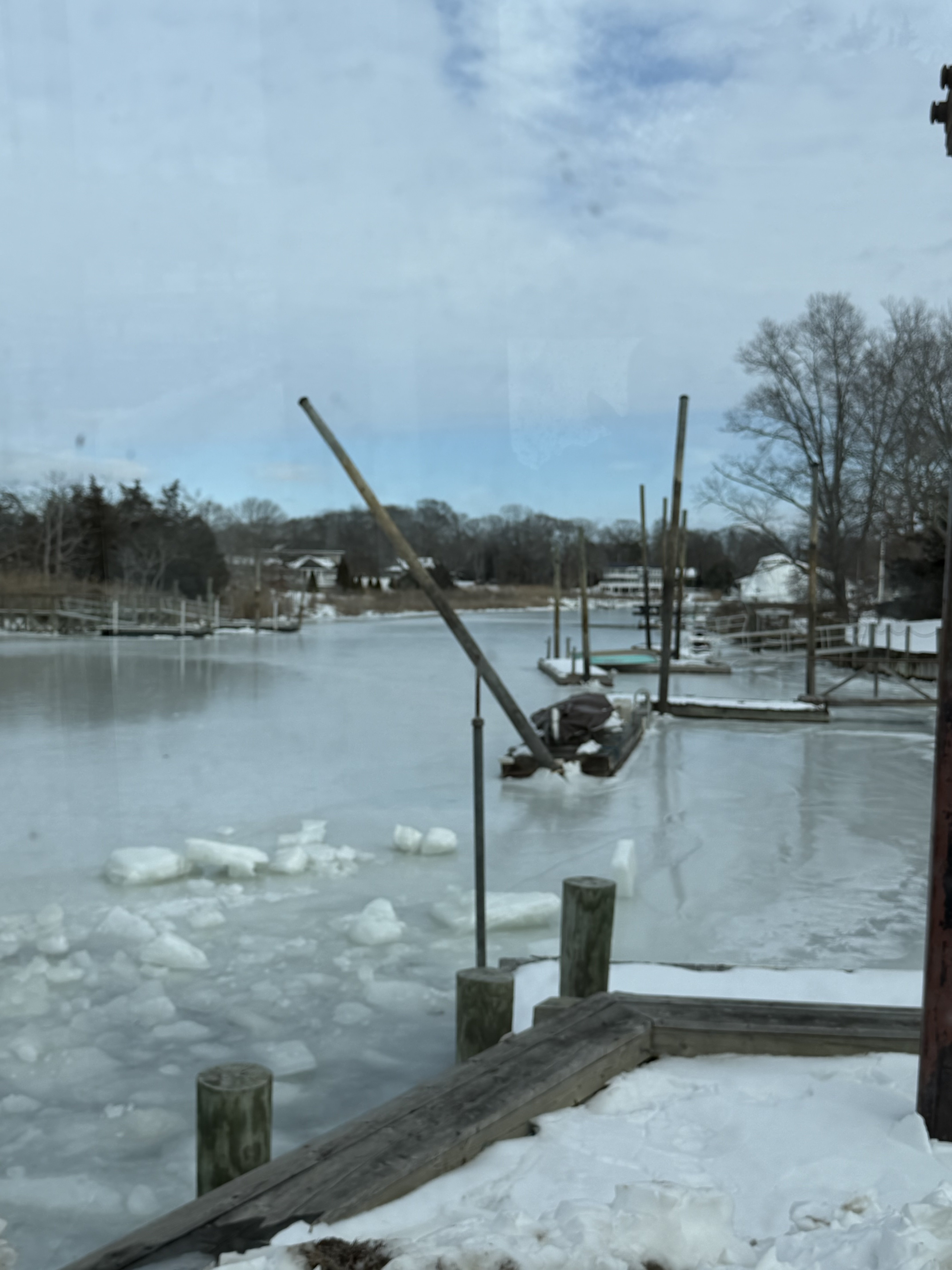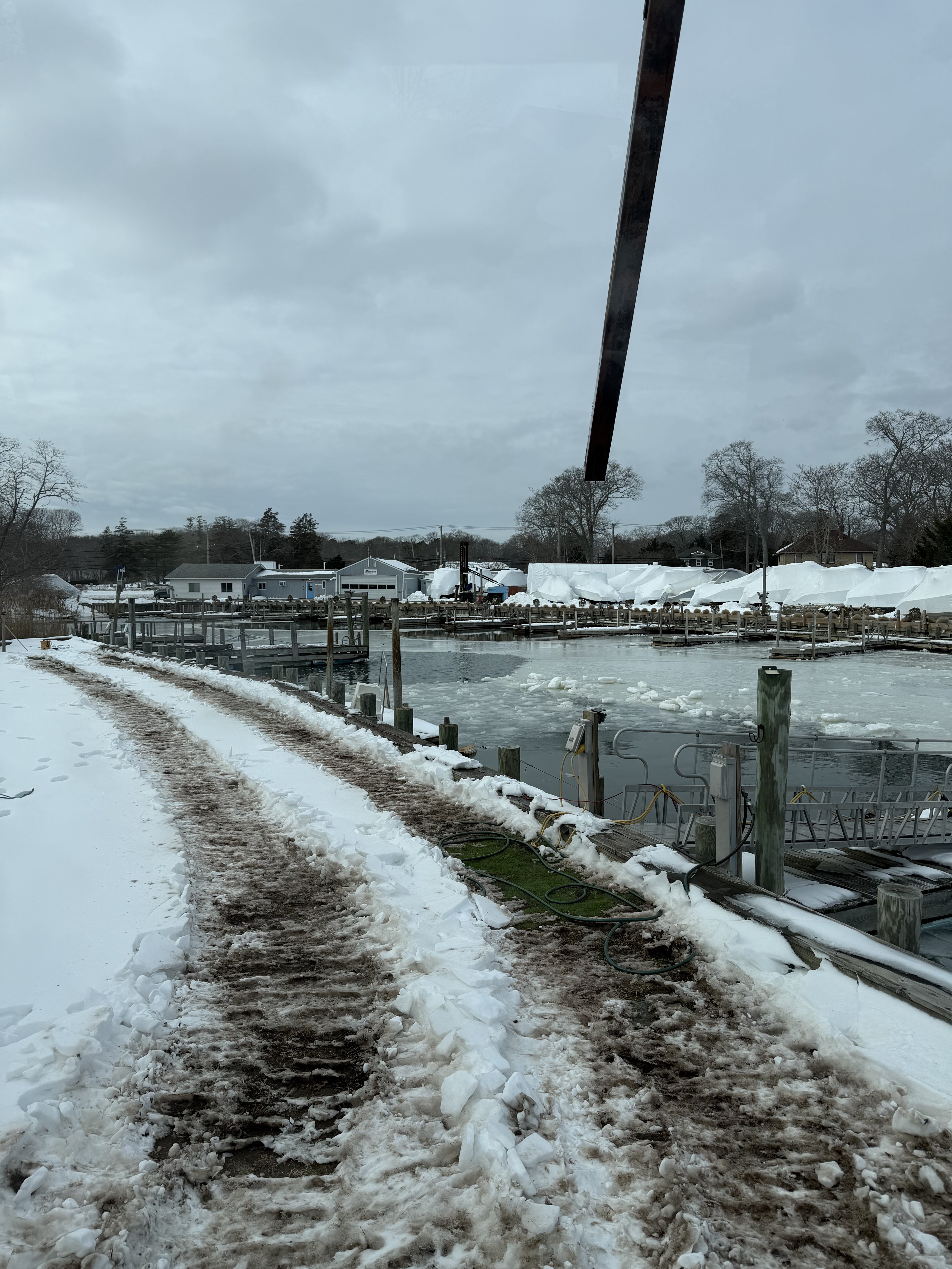 So after dropping my phone, I was signed out for a few days and couldn’t add a picture from my new phone. Now that it’s all sorted out (thanks Raybo) I can add from a few days ago. This is looking down my creek, whoever resets piles this season is going to make a killing. Also pictured is my “ice breaker” so I could get the ice eaters in the water at my docks.