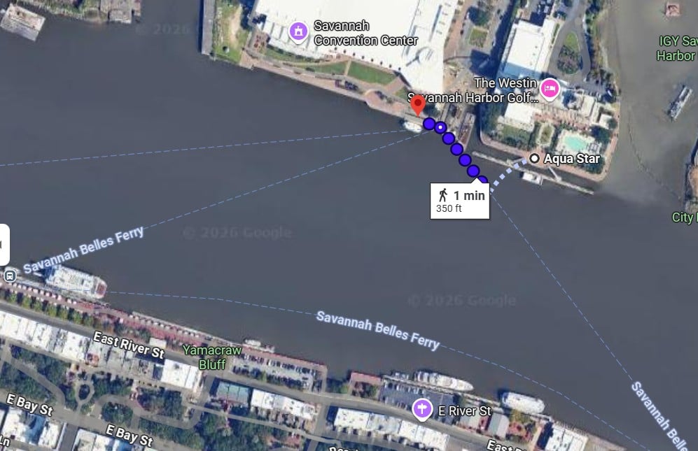 Me: "Hey Google, give me walking directions to the Savannah ferry dock." Google: "When the ferry passes, swim over and climb aboard. Ride it to the ferry dock."