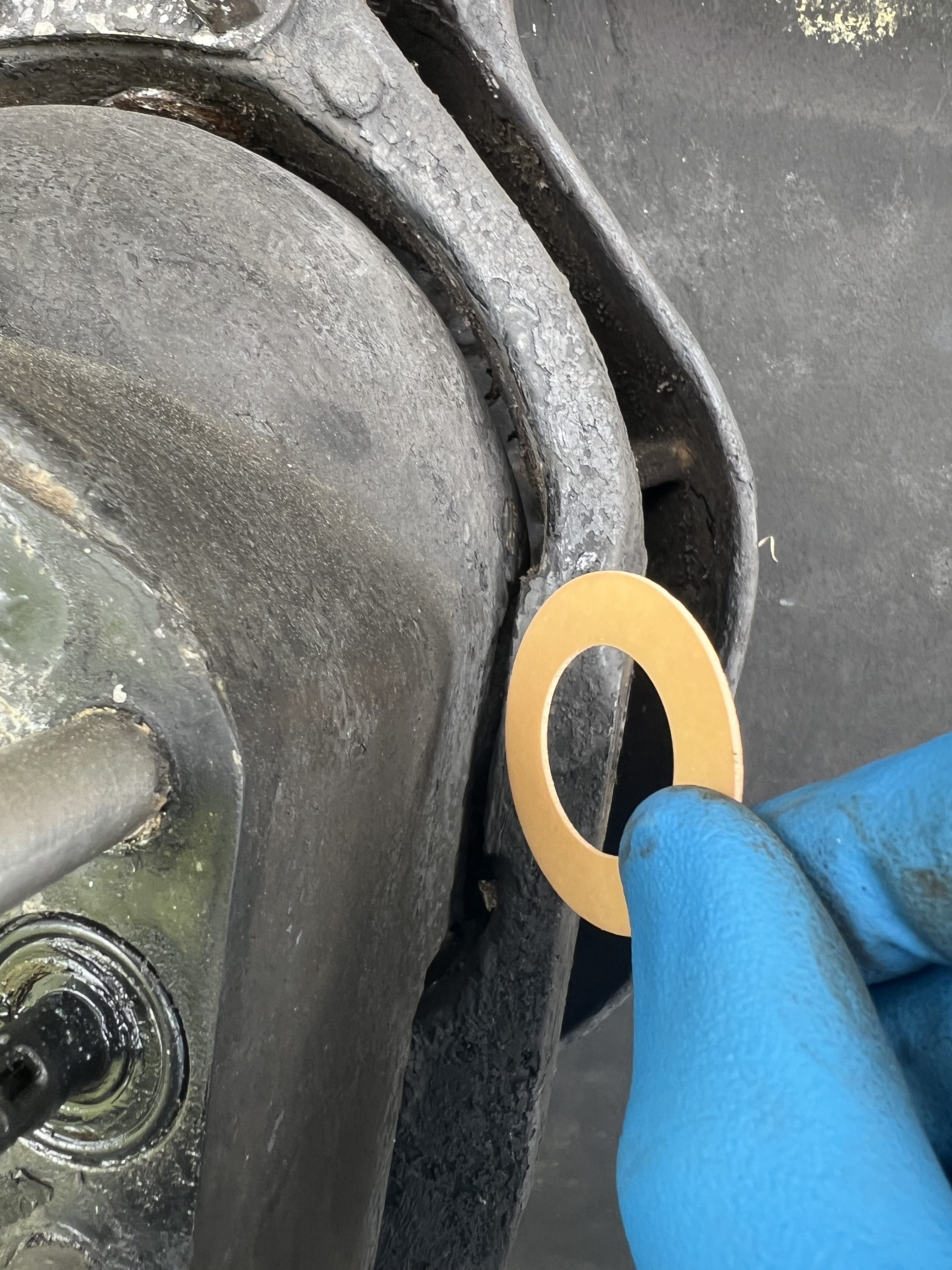 @Dream_Inn made me get off my @$$ and work on the boat! Last season I noticed a slight drip at the oil filter adapter at the back of the starboard engine. It’s a pain to get to and you have to remove one oil line and loosen the other to tighten the large nut on top. I don’t know how you can do it if you don’t have any space between the engines. I was able to get a wrench on it and snug it down. I think I got at least 3/4 of a turn.